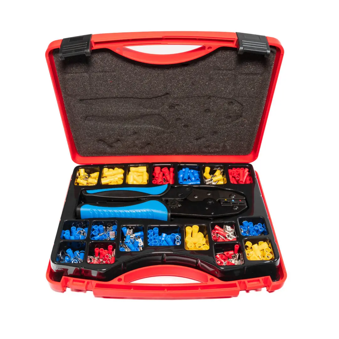 Geleverd in een stevige hard plastic koffer, is dit assortiment gemakkelijk mee te nemen en bestand tegen dagelijkse stoten. Naast kabelschoenen en een krimptang bevat de set ook kabelbinders en isolatietape voor een professionele afwerking van al je elektrische projecten.