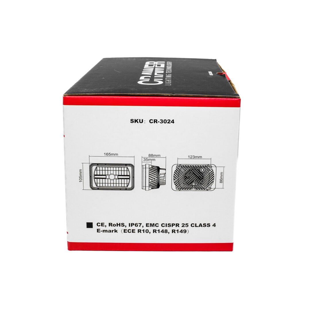 De CR-3024 is een krachtige LED-koplamp met groot- en dimlicht die geschikt is voor alle omstandigheden in de landbouw, transport en industrie. Het dimlicht geeft een brede, gelijkmatige lichtbundel voor de zichtbaarheid van je trekker/voertuig, terwijl het grootlicht zorgt voor maximaal zicht bij transport of werk in het donker.