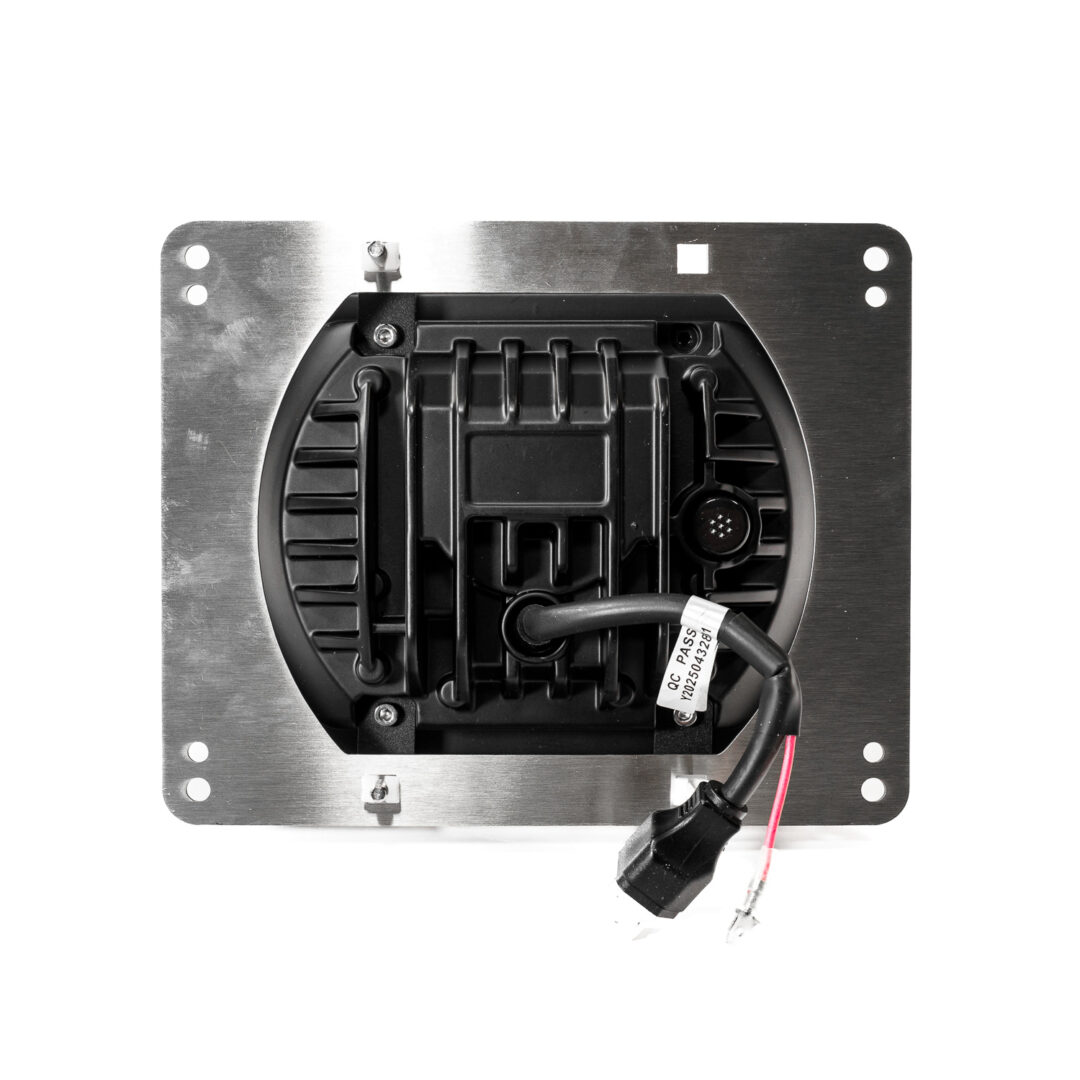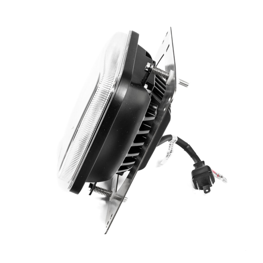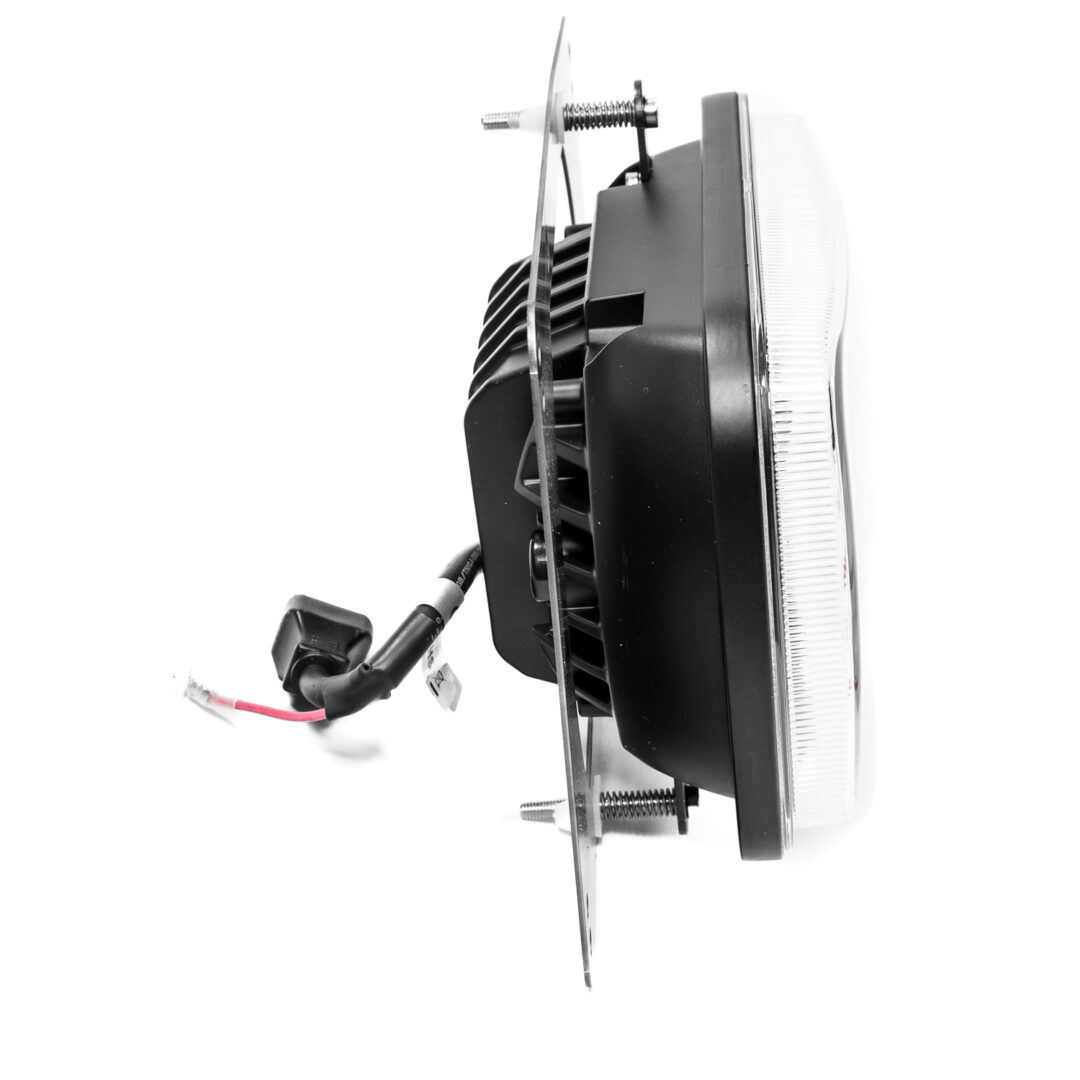 De aluminium behuizing en sterke poly-lens maken deze koplamp bestand tegen trillingen, vocht en vuil.