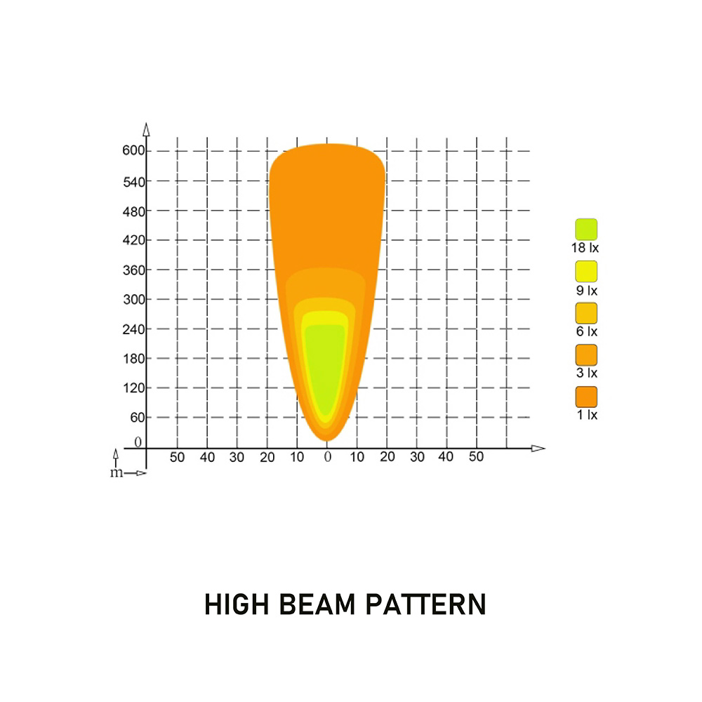 De lamp beschikt over grootlicht, dimlicht en wit positielicht en geeft een symmetrisch lichtpatroon.