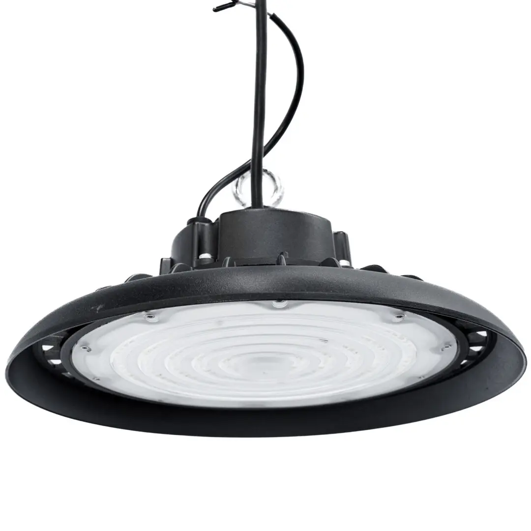 Deze LED High Bay UFO 150W is een krachtige en efficiënte oplossing voor het verlichten van grote ruimtes zoals hallen, stallen, werkplaatsen en magazijnen.