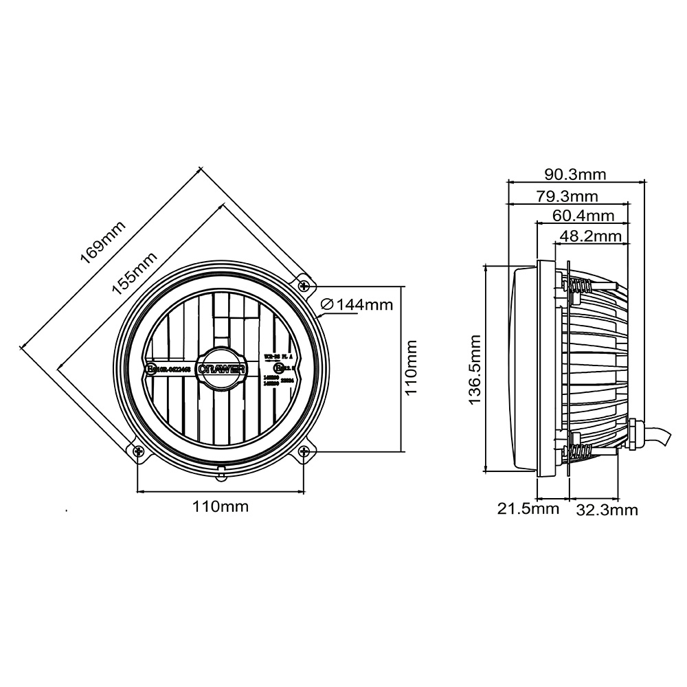 - Diameter lichtunit: 144 mm