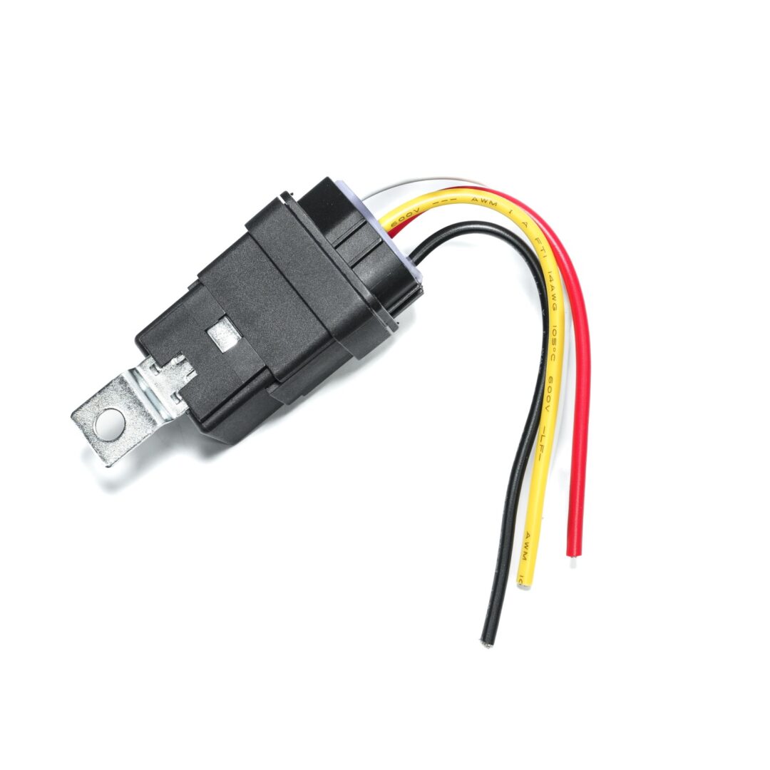 Deze 12 volt Relais met een maximum van 40 ampère heeft ook nog een 4 polige kabel van ongeveer 10cm als aansluiting. Daarnaast is deze relais ook waterdicht en bevat een kabelboom zodat hij overal in je elektrische systeem geplaatst kan worden.